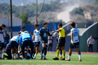 Pachuca, Hidalgo, 12 de noviembre de 2025. Edy Lugo en lamento, durante el partido correspondiente a la ida de los Cuartos de Final del torneo Apertura 2025 de la Liga BBVA MX categoría Sub17, entre los Tuzos del Pachuca y los Rayados de Monterrey, realizado en la Universidad del Futbol. Foto: Imago7/ Elizabeth Hernández