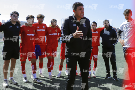 Torreón, Coahuila, 12 de noviembre de 2025. Nuilson Matías, director técnico en reclamo, durante el partido correspondiente a la ida de los Cuartos de Final del torneo Apertura 2025 de la Liga BBVA MX categoría Sub17, entre los Guerreros de Santos Laguna y los Diablos Rojos del Toluca, realizado en el TSM. Foto: Imago7/ Saul Perales