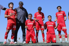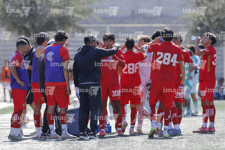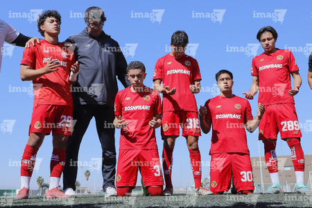 Torreón, Coahuila, 12 de noviembre de 2025. Jugadores del Toluca, durante el partido correspondiente a la ida de los Cuartos de Final del torneo Apertura 2025 de la Liga BBVA MX categoría Sub17, entre los Guerreros de Santos Laguna y los Diablos Rojos del Toluca, realizado en el TSM. Foto: Imago7/ Saul Perales