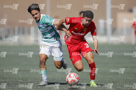 Torreón, Coahuila, 12 de noviembre de 2025. Esteban Garza y Diego Ocampo, durante el partido correspondiente a la ida de los Cuartos de Final del torneo Apertura 2025 de la Liga BBVA MX categoría Sub17, entre los Guerreros de Santos Laguna y los Diablos Rojos del Toluca, realizado en el TSM. Foto: Imago7/ Saul Perales