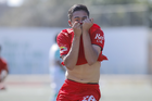 Torreón, Coahuila, 12 de noviembre de 2025. Pedro Matías resultó lesionado, durante el partido correspondiente a la ida de los Cuartos de Final del torneo Apertura 2025 de la Liga BBVA MX categoría Sub17, entre los Guerreros de Santos Laguna y los Diablos Rojos del Toluca, realizado en el TSM. Foto: Imago7/ Saul Perales