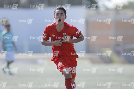 Torreón, Coahuila, 12 de noviembre de 2025. Leonardo Guerrero en festejo de gol, durante el partido correspondiente a la ida de los Cuartos de Final del torneo Apertura 2025 de la Liga BBVA MX categoría Sub17, entre los Guerreros de Santos Laguna y los Diablos Rojos del Toluca, realizado en el TSM. Foto: Imago7/ Saul Perales