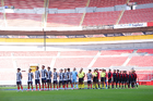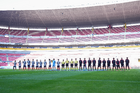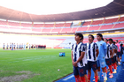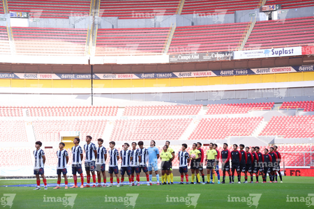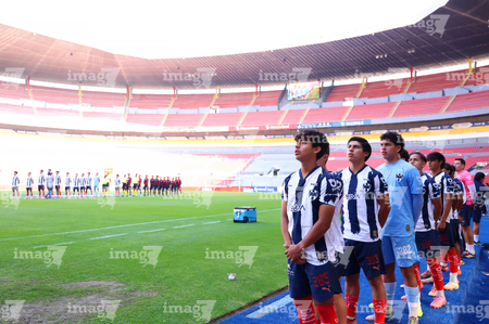 Guadalajara, Jalisco, 26 de noviembre de 2025. Protocolo, durante el partido correspondiente a la ida de la Gran Final del torneo Apertura 2025 de la Liga BBVA categoría Sub17, entre los Rojinegros del Atlas y los Rayados de Monterrey, realizado en el estadio Jalisco. Foto: Imago7/ Juan Carlos Cubeyro.