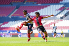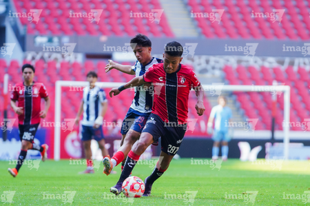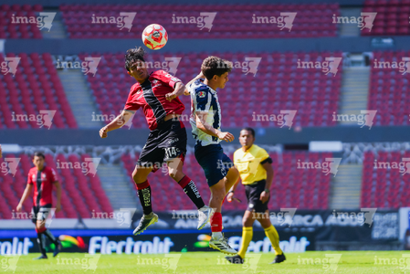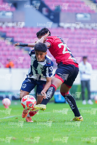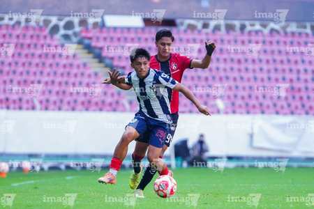 Guadalajara, Jalisco, 26 de noviembre de 2025. César Franco y Zander Benitez, durante el partido correspondiente a la ida de la Gran Final del torneo Apertura 2025 de la Liga BBVA categoría Sub17, entre los Rojinegros del Atlas y los Rayados de Monterrey, realizado en el estadio Jalisco. Foto: Imago7/ Hugo Ramirez.
