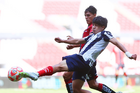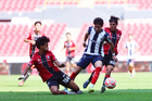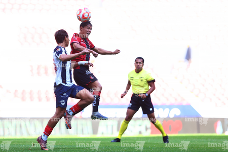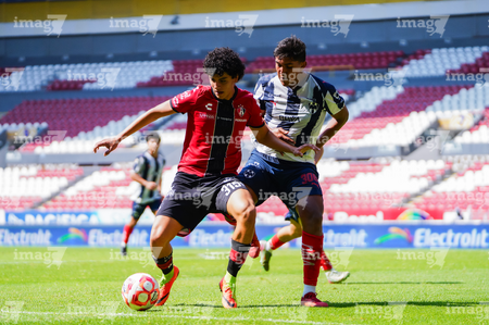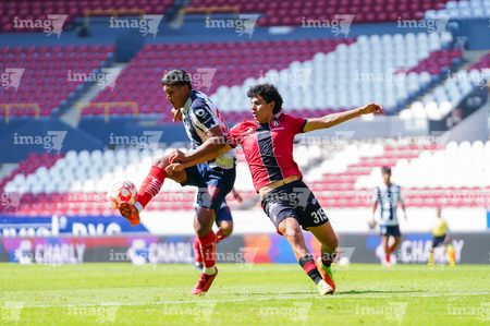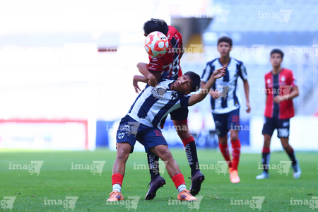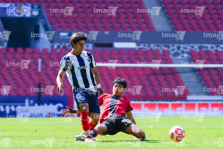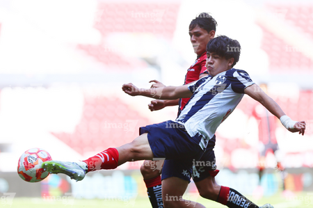 Guadalajara, Jalisco, 26 de noviembre de 2025. Zander Benitez y César Franco, durante el partido correspondiente a la ida de la Gran Final del torneo Apertura 2025 de la Liga BBVA categoría Sub17, entre los Rojinegros del Atlas y los Rayados de Monterrey, realizado en el estadio Jalisco. Foto: Imago7/ Hugo Ramirez.