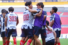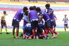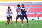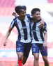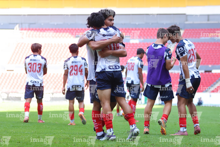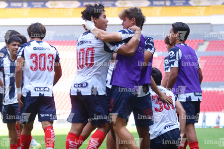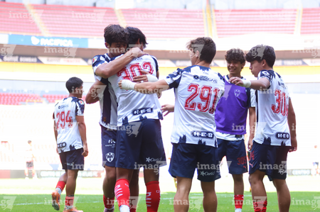 Guadalajara, Jalisco, 26 de noviembre de 2025. Jugadores de Monterrey en festejo de gol, durante el partido correspondiente a la ida de la Gran Final del torneo Apertura 2025 de la Liga BBVA categoría Sub17, entre los Rojinegros del Atlas y los Rayados de Monterrey, realizado en el estadio Jalisco. Foto: Imago7/ Juan Carlos Cubeyro.