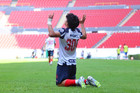 Guadalajara, Jalisco, 26 de noviembre de 2025. Santiago Lomelin en festejo, durante el partido correspondiente a la ida de la Gran Final del torneo Apertura 2025 de la Liga BBVA categoría Sub17, entre los Rojinegros del Atlas y los Rayados de Monterrey, realizado en el estadio Jalisco. Foto: Imago7/ Hugo Ramirez.