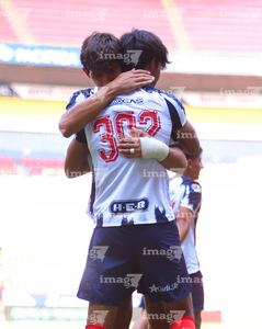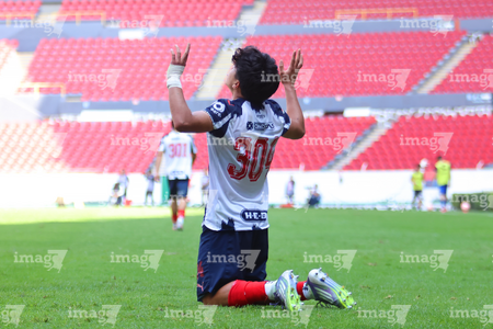 Guadalajara, Jalisco, 26 de noviembre de 2025. Jose Perez en festejo de gol, durante el partido correspondiente a la ida de la Gran Final del torneo Apertura 2025 de la Liga BBVA categoría Sub17, entre los Rojinegros del Atlas y los Rayados de Monterrey, realizado en el estadio Jalisco. Foto: Imago7/ Juan Carlos Cubeyro.