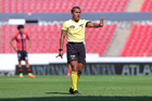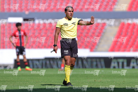 Guadalajara, Jalisco, 26 de noviembre de 2025. Sergio Iván Jiménez Zavala, árbitro central, durante el partido correspondiente a la ida de la Gran Final del torneo Apertura 2025 de la Liga BBVA categoría Sub17, entre los Rojinegros del Atlas y los Rayados de Monterrey, realizado en el estadio Jalisco. Foto: Imago7/ Juan Carlos Cubeyro.