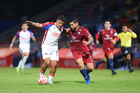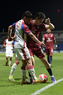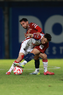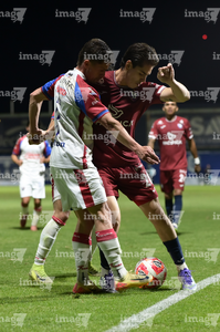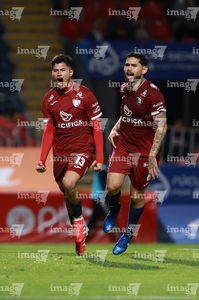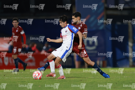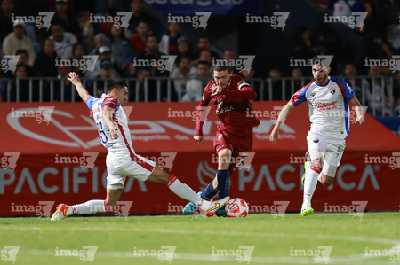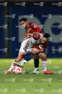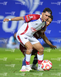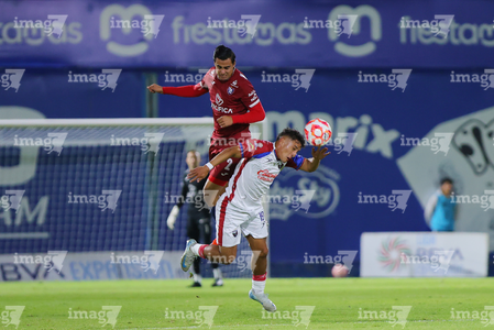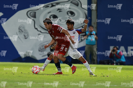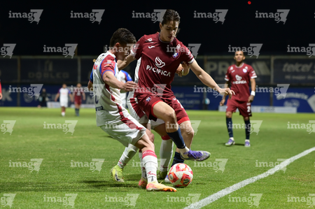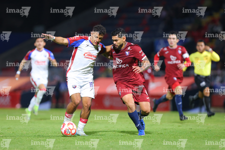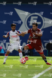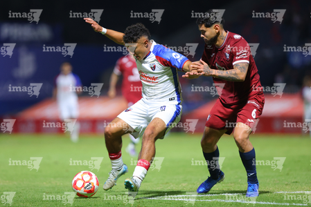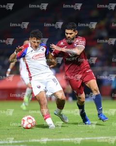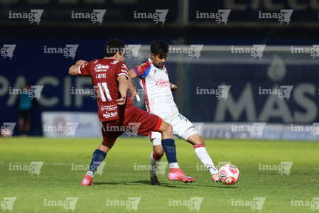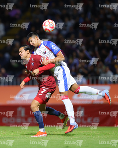 Tepatitlán, Jalisco, 12 de noviembre del 2025. Maximiliano García y Diego Aguilar, durante el partido correspondiente a la ida de los Cuartos de Final del torneo Apertura 2025 de la Liga BBVA Expansión MX, entre los Alteños de Tepatitlán FC y los Potros de Hierro del Atlante FC, realizado en el estadio “Tepa” Gómez. Foto: Imago7/ Juan Carlos Cubeyro.