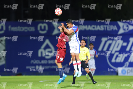 Tepatitlán, Jalisco, 12 de noviembre del 2025. Samuel González y Alan Ruiz, durante el partido correspondiente a la ida de los Cuartos de Final del torneo Apertura 2025 de la Liga BBVA Expansión MX, entre los Alteños de Tepatitlán FC y los Potros de Hierro del Atlante FC, realizado en el estadio “Tepa” Gómez. Foto: Imago7/ Juan Carlos Cubeyro.