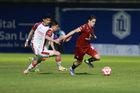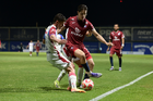 Tepatitlán, Jalisco, 12 de noviembre del 2025. Maximiliano García y Alan Ruiz, durante el partido correspondiente a la ida de los Cuartos de Final del torneo Apertura 2025 de la Liga BBVA Expansión MX, entre los Alteños de Tepatitlán FC y los Potros de Hierro del Atlante FC, realizado en el estadio “Tepa” Gómez. Foto: Imago7/Cristian Hernandez