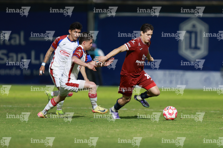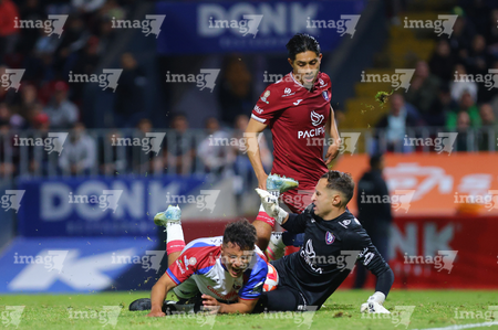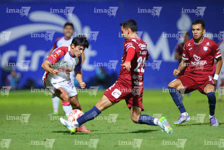 Tepatitlán, Jalisco, 12 de noviembre del 2025. Diego Cruz, Leonardo Sámano y Gabino Espinoza, durante el partido correspondiente a la ida de los Cuartos de Final del torneo Apertura 2025 de la Liga BBVA Expansión MX, entre los Alteños de Tepatitlán FC y los Potros de Hierro del Atlante FC, realizado en el estadio “Tepa” Gómez. Foto: Imago7/ Juan Carlos Cubeyro.