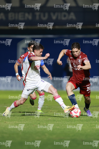 Tepatitlán, Jalisco, 12 de noviembre del 2025. Maximiliano García y Jesús Venegas, durante el partido correspondiente a la ida de los Cuartos de Final del torneo Apertura 2025 de la Liga BBVA Expansión MX, entre los Alteños de Tepatitlán FC y los Potros de Hierro del Atlante FC, realizado en el estadio “Tepa” Gómez. Foto: Imago7/ Juan Carlos Cubeyro.