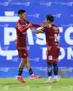 Tepatitlán, Jalisco, 12 de noviembre del 2025. Jugadores del Tepatitlán en festejo de gol, durante el partido correspondiente a la ida de los Cuartos de Final del torneo Apertura 2025 de la Liga BBVA Expansión MX, entre los Alteños de Tepatitlán FC y los Potros de Hierro del Atlante FC, realizado en el estadio “Tepa” Gómez. Foto: Imago7/ Juan Carlos Cubeyro.