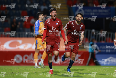 Tepatitlán, Jalisco, 12 de noviembre del 2025. Mario Aguilar en festejo de gol, durante el partido correspondiente a la ida de los Cuartos de Final del torneo Apertura 2025 de la Liga BBVA Expansión MX, entre los Alteños de Tepatitlán FC y los Potros de Hierro del Atlante FC, realizado en el estadio “Tepa” Gómez. Foto: Imago7/Cristian Hernandez