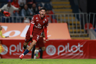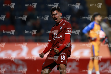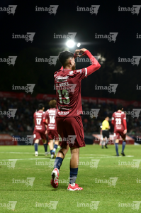 Tepatitlán, Jalisco, 12 de noviembre del 2025. Gustavo Gutiérrez en festejo, durante el partido correspondiente a la ida de los Cuartos de Final del torneo Apertura 2025 de la Liga BBVA Expansión MX, entre los Alteños de Tepatitlán FC y los Potros de Hierro del Atlante FC, realizado en el estadio “Tepa” Gómez. Foto: Imago7/ Juan Carlos Cubeyro.