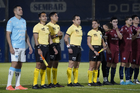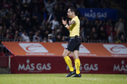 Tepatitlán, Jalisco, 20 de noviembre del 2025. Orlando Delgadillo Franco, árbitro central, durante el partido correspondiente a la ida de las Semifinales del torneo Apertura 2025 de la Liga BBVA Expansión MX, entre los Alteños de Tepatitlán FC y la Jaiba Brava del Tampico Madero, realizado en el estadio “Tepa” Gómez. Foto: Imago7/Sebastian Laureano Miranda