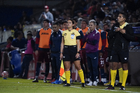 Tepatitlán, Jalisco, 20 de noviembre del 2025. Sergio Flores en reclamo, durante el partido correspondiente a la ida de las Semifinales del torneo Apertura 2025 de la Liga BBVA Expansión MX, entre los Alteños de Tepatitlán FC y la Jaiba Brava del Tampico Madero, realizado en el estadio “Tepa” Gómez. Foto: Imago7/Sebastian Laureano Miranda
