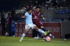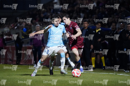 Tepatitlán, Jalisco, 20 de noviembre del 2025. Leonardo Sámano y Sergio Flores, durante el partido correspondiente a la ida de las Semifinales del torneo Apertura 2025 de la Liga BBVA Expansión MX, entre los Alteños de Tepatitlán FC y la Jaiba Brava del Tampico Madero, realizado en el estadio “Tepa” Gómez. Foto: Imago7/Sebastian Laureano Miranda