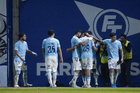 Tepatitlán, Jalisco, 20 de noviembre del 2025. Jugadores de la Jaiba Brava en festejo de gol, durante el partido correspondiente a la ida de las Semifinales del torneo Apertura 2025 de la Liga BBVA Expansión MX, entre los Alteños de Tepatitlán FC y la Jaiba Brava del Tampico Madero, realizado en el estadio “Tepa” Gómez. Foto: Imago7/Sebastian Laureano Miranda