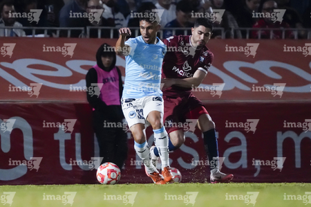 Tepatitlán, Jalisco, 20 de noviembre del 2025. Ulises Cardona y Jesús Escoboza, durante el partido correspondiente a la ida de las Semifinales del torneo Apertura 2025 de la Liga BBVA Expansión MX, entre los Alteños de Tepatitlán FC y la Jaiba Brava del Tampico Madero, realizado en el estadio “Tepa” Gómez. Foto: Imago7/Sebastian Laureano Miranda