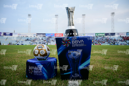 Tampico Madero, Tamaulipas, 6 de diciembre de 2025. Trofeo de campeón, durante el partido correspondiente a la vuelta de la Gran Final del torneo Apertura 2025 de la Liga BBVA Expansión MX, entre la Jaiba Brava del Tampico Madero y los Freseros de irapuato, realizado en el estadio Tamaulipas. Foto: Imago7/ Alexis Chavez