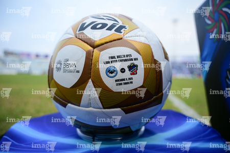 Tampico Madero, Tamaulipas, 6 de diciembre de 2025. Balón de futbol Voit Aereus, durante el partido correspondiente a la vuelta de la Gran Final del torneo Apertura 2025 de la Liga BBVA Expansión MX, entre la Jaiba Brava del Tampico Madero y los Freseros de irapuato, realizado en el estadio Tamaulipas. Foto: Imago7/ Alexis Chavez