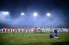 Tampico Madero, Tamaulipas, 6 de diciembre de 2025. Protocolo, durante el partido correspondiente a la vuelta de la Gran Final del torneo Apertura 2025 de la Liga BBVA Expansión MX, entre la Jaiba Brava del Tampico Madero y los Freseros de irapuato, realizado en el estadio Tamaulipas. Foto: Imago7/ Richard Vogel
