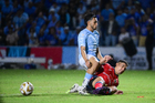Tampico Madero, Tamaulipas, 6 de diciembre de 2025. Sergio Flores y Eduardo Del Ángel, durante el partido correspondiente a la vuelta de la Gran Final del torneo Apertura 2025 de la Liga BBVA Expansión MX, entre la Jaiba Brava del Tampico Madero y los Freseros de irapuato, realizado en el estadio Tamaulipas. Foto: Imago7/ Alexis Chavez