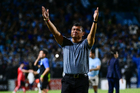 Tampico Madero, Tamaulipas, 6 de diciembre de 2025. Aldo Ballesteros Barba, árbitro central, durante el partido correspondiente a la vuelta de la Gran Final del torneo Apertura 2025 de la Liga BBVA Expansión MX, entre la Jaiba Brava del Tampico Madero y los Freseros de irapuato, realizado en el estadio Tamaulipas. Foto: Imago7/ Alexis Chavez