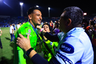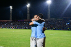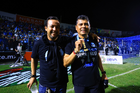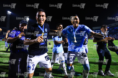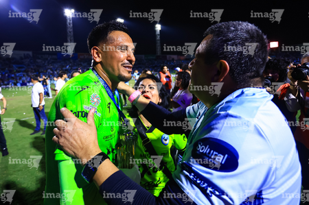 Tampico Madero, Tamaulipas, 6 de diciembre de 2025. Cristian González y José López en festejo con su medalla de campeón, durante el partido correspondiente a la vuelta de la Gran Final del torneo Apertura 2025 de la Liga BBVA Expansión MX, entre la Jaiba Brava del Tampico Madero y los Freseros de irapuato, realizado en el estadio Tamaulipas. Foto: Imago7/ Richard Vogel
