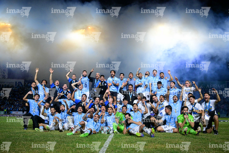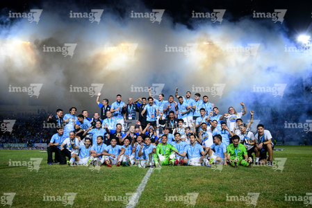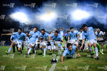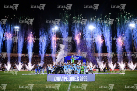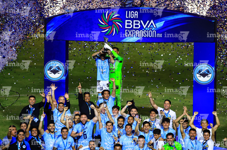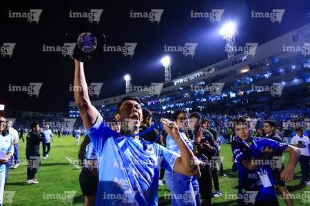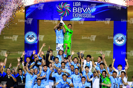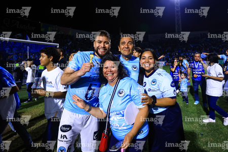 Tampico Madero, Tamaulipas, 6 de diciembre de 2025. Jugadores de la Jaiba Brava en festejo con el trofeo de campeón, durante el partido correspondiente a la vuelta de la Gran Final del torneo Apertura 2025 de la Liga BBVA Expansión MX, entre la Jaiba Brava del Tampico Madero y los Freseros de irapuato, realizado en el estadio Tamaulipas. Foto: Imago7/ Alexis Chavez