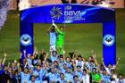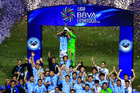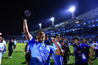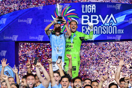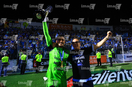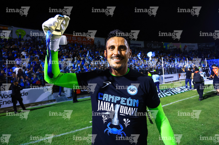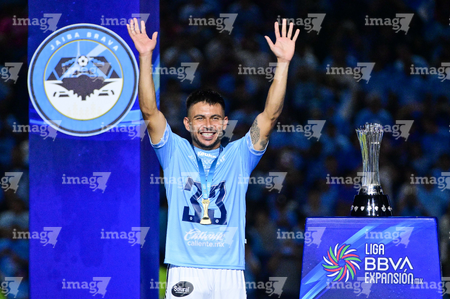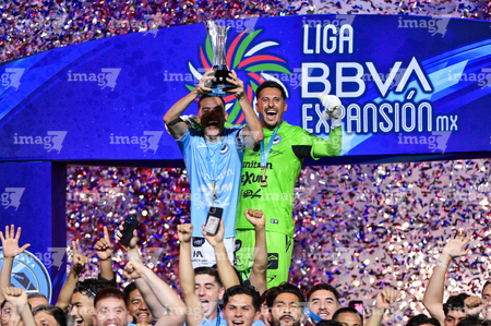 Tampico Madero, Tamaulipas, 6 de diciembre de 2025. Gerardo Ruíz en festejo con Trofeo de campeón, durante el partido correspondiente a la vuelta de la Gran Final del torneo Apertura 2025 de la Liga BBVA Expansión MX, entre la Jaiba Brava del Tampico Madero y los Freseros de irapuato, realizado en el estadio Tamaulipas. Foto: Imago7/ Richard Vogel