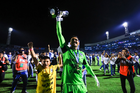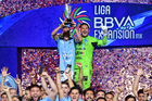 Tampico Madero, Tamaulipas, 6 de diciembre de 2025. Rubén Domínguez en festejo con Trofeo de campeón, durante el partido correspondiente a la vuelta de la Gran Final del torneo Apertura 2025 de la Liga BBVA Expansión MX, entre la Jaiba Brava del Tampico Madero y los Freseros de irapuato, realizado en el estadio Tamaulipas. Foto: Imago7/ Richard Vogel