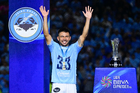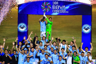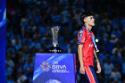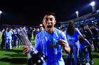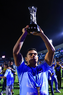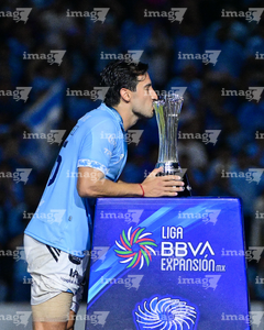 Tampico Madero, Tamaulipas, 6 de diciembre de 2025. Diego García en festejo con Trofeo de campeón, durante el partido correspondiente a la vuelta de la Gran Final del torneo Apertura 2025 de la Liga BBVA Expansión MX, entre la Jaiba Brava del Tampico Madero y los Freseros de irapuato, realizado en el estadio Tamaulipas. Foto: Imago7/ Richard Vogel