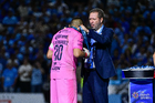 Tampico Madero, Tamaulipas, 6 de diciembre de 2025. Marco Ruíz, director técnico en festejo, durante el partido correspondiente a la vuelta de la Gran Final del torneo Apertura 2025 de la Liga BBVA Expansión MX, entre la Jaiba Brava del Tampico Madero y los Freseros de irapuato, realizado en el estadio Tamaulipas. Foto: Imago7/ Alexis Chavez