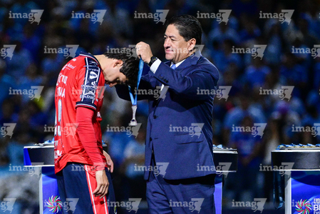 Tampico Madero, Tamaulipas, 6 de diciembre de 2025. César Santana Recibe medalla de subcampeón, durante el partido correspondiente a la vuelta de la Gran Final del torneo Apertura 2025 de la Liga BBVA Expansión MX, entre la Jaiba Brava del Tampico Madero y los Freseros de irapuato, realizado en el estadio Tamaulipas. Foto: Imago7/ Alexis Chavez