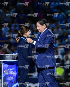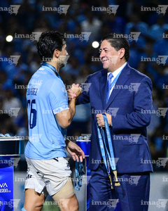 Tampico Madero, Tamaulipas, 6 de diciembre de 2025. Eduardo Pérez recibe medalla de campeón, durante el partido correspondiente a la vuelta de la Gran Final del torneo Apertura 2025 de la Liga BBVA Expansión MX, entre la Jaiba Brava del Tampico Madero y los Freseros de irapuato, realizado en el estadio Tamaulipas. Foto: Imago7/ Alexis Chavez