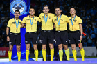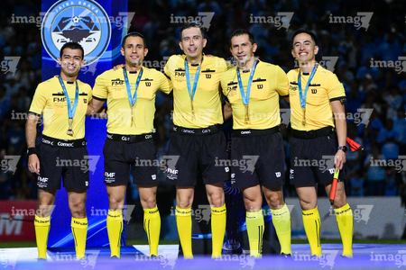Tampico Madero, Tamaulipas, 6 de diciembre de 2025. Cuerpo árbitral, durante el partido correspondiente a la vuelta de la Gran Final del torneo Apertura 2025 de la Liga BBVA Expansión MX, entre la Jaiba Brava del Tampico Madero y los Freseros de irapuato, realizado en el estadio Tamaulipas. Foto: Imago7/ Alexis Chavez