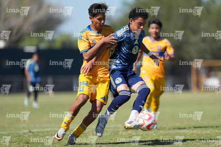 Real de Palmas, Nuevo León, 12 de noviembre de 2025. , durante el partido correspondiente a la ida de los Cuartos de Final del torneo Apertura 2025 de la Liga BBVA MX categoría Sub15, entre los Tigres de la UANL y las Águilas del América, realizado en las instalaciones de Zuazua. Foto: Imago7/ Andrea Jiménez