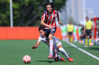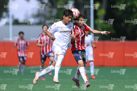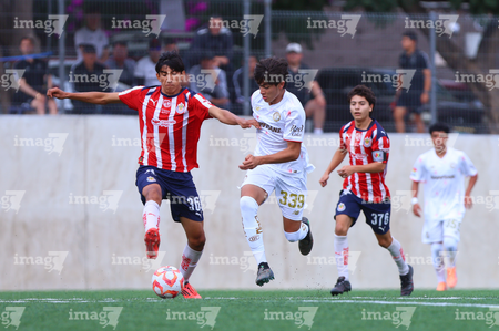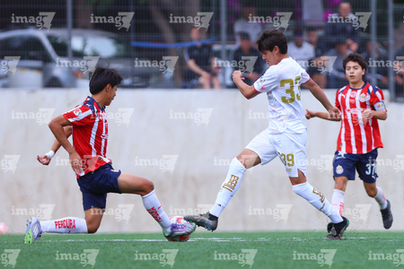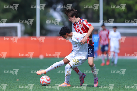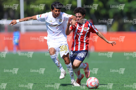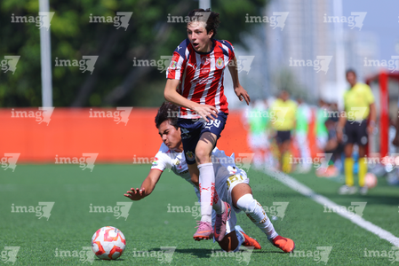 Zapopan, Jalisco, 20 de noviembre de 2025. José García y Jorge Flandes, durante el partido correspondiente a la ida de las Semifinales del torneo Apertura 2025 de la Liga BBVA MX categoría Sub15, entre las Chivas Rayadas del Guadalajara y los Diablos Rojos del Toluca, realizado en Verde Valle. Foto: Imago7/ Juan Carlos Cubeyro.