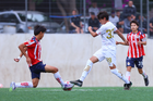 Zapopan, Jalisco, 20 de noviembre de 2025. Dilan Padilla, durante el partido correspondiente a la ida de las Semifinales del torneo Apertura 2025 de la Liga BBVA MX categoría Sub15, entre las Chivas Rayadas del Guadalajara y los Diablos Rojos del Toluca, realizado en Verde Valle. Foto: Imago7/ Juan Carlos Cubeyro.