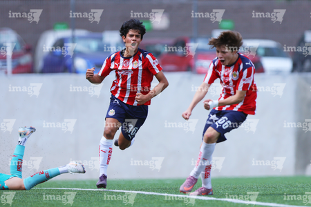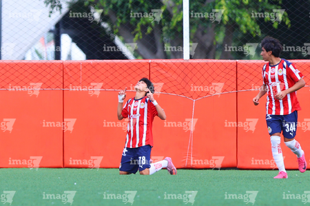 Zapopan, Jalisco, 20 de noviembre de 2025. René Godínez en festejo de gol, durante el partido correspondiente a la ida de las Semifinales del torneo Apertura 2025 de la Liga BBVA MX categoría Sub15, entre las Chivas Rayadas del Guadalajara y los Diablos Rojos del Toluca, realizado en Verde Valle. Foto: Imago7/ Juan Carlos Cubeyro.