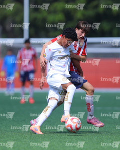 Zapopan, Jalisco, 20 de noviembre de 2025. Leonardo Morquecho y Jorge Flandes, durante el partido correspondiente a la ida de las Semifinales del torneo Apertura 2025 de la Liga BBVA MX categoría Sub15, entre las Chivas Rayadas del Guadalajara y los Diablos Rojos del Toluca, realizado en Verde Valle. Foto: Imago7/ Juan Carlos Cubeyro.