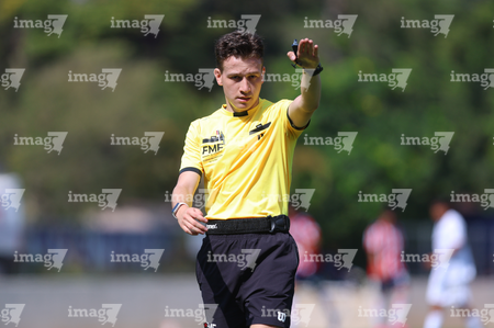 Zapopan, Jalisco, 20 de noviembre de 2025. Adrián Hernández, Árbitro Central, durante el partido correspondiente a la ida de las Semifinales del torneo Apertura 2025 de la Liga BBVA MX categoría Sub15, entre las Chivas Rayadas del Guadalajara y los Diablos Rojos del Toluca, realizado en Verde Valle. Foto: Imago7/ Juan Carlos Cubeyro.