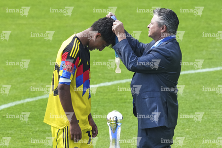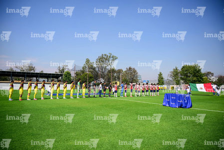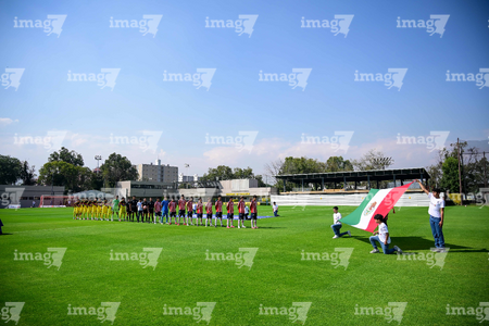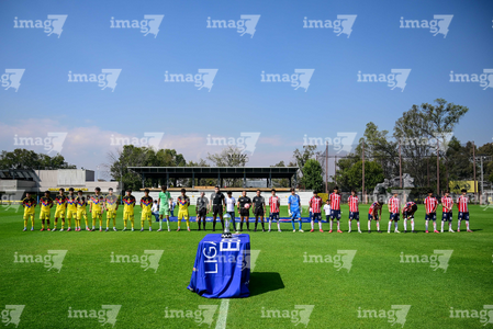 Ciudad de México, 29 de noviembre de 2025. Protocolo, durante el partido correspondiente a la vuelta de la Gran Final del torneo Apertura 2025 de la Liga BBVA MX categoría Sub15, entre las Águiilas del América y las Chivas Rayadas del Guadalajara, realizado en Coapa. Foto: Imago7/ Alexis Chavez