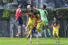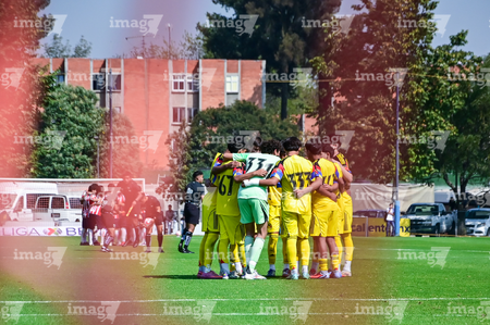 Ciudad de México, 29 de noviembre de 2025. Jugadores del América Sub 15, durante el partido correspondiente a la vuelta de la Final del torneo Apertura 2025 de la Liga BBVA MX categoría Sub 15, entre las Águilas del América y las Chivas Rayadas del Guadalajara, realizado en Copa. Foto: Imago7/ Mauricio Ruiz