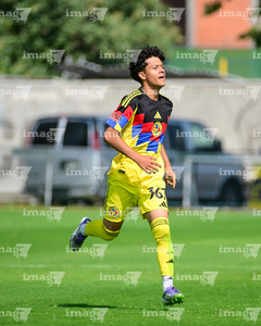 Ciudad de México, 29 de noviembre de 2025. Nicolas Cortes, durante el partido correspondiente a la vuelta de la Final del torneo Apertura 2025 de la Liga BBVA MX categoría Sub 15, entre las Águilas del América y las Chivas Rayadas del Guadalajara, realizado en Copa. Foto: Imago7/ Mauricio Ruiz