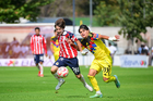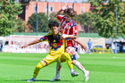 Ciudad de México, 29 de noviembre de 2025. Jorge Camacho y Kevin Pérez, durante el partido correspondiente a la vuelta de la Gran Final del torneo Apertura 2025 de la Liga BBVA MX categoría Sub15, entre las Águiilas del América y las Chivas Rayadas del Guadalajara, realizado en Coapa. Foto: Imago7/ Alexis Chavez